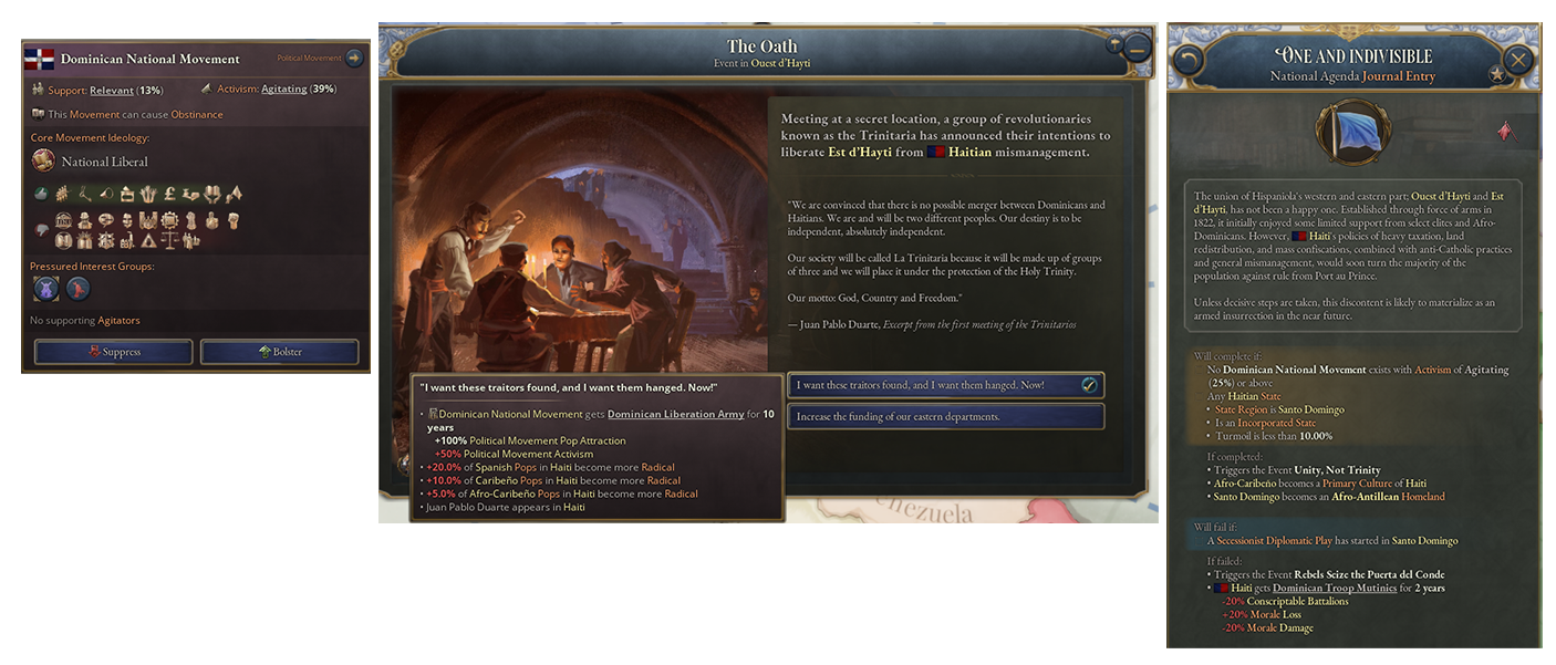 Should this movement be politically relevant a couple of years into the game, Haiti will get the new One and Indivisible Journal Entry that will spike Dominican resistance to Haitian rule even further.