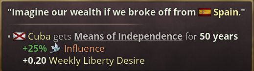 There are some bonuses available no matter what path is taken to breaking away from Spain, including if players use the regular mechanics to fight an early war.
