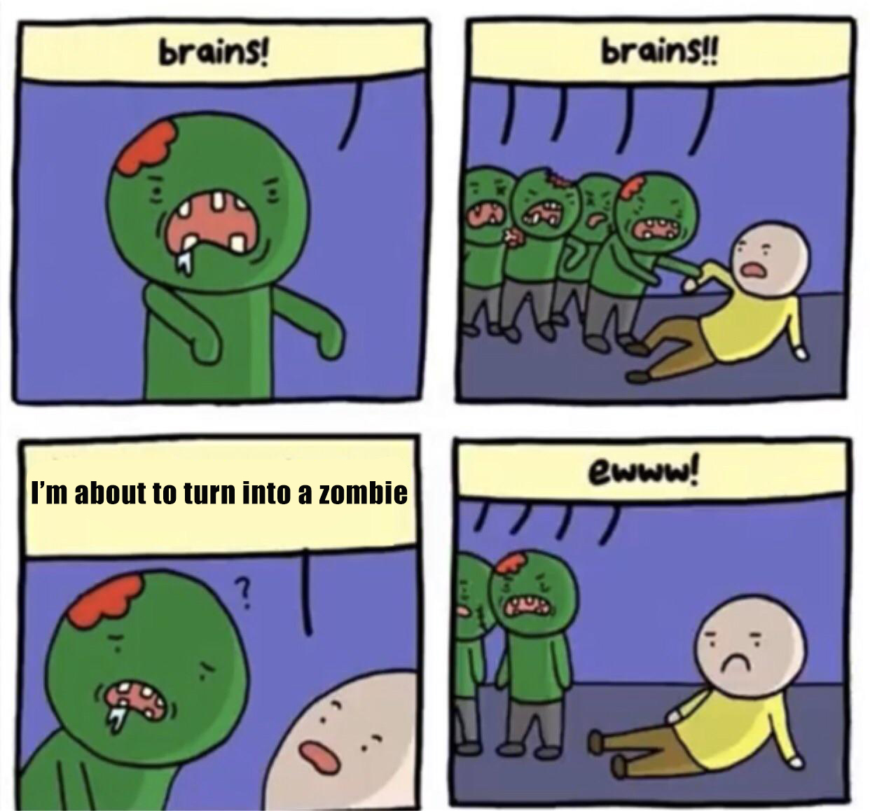 A: No, you can’t. But your still-human buddy can. Once you’ve turned into a zombie, your limbs are too stiff to open the can, so you can only watch helplessly as your friend eats the tomatoes.