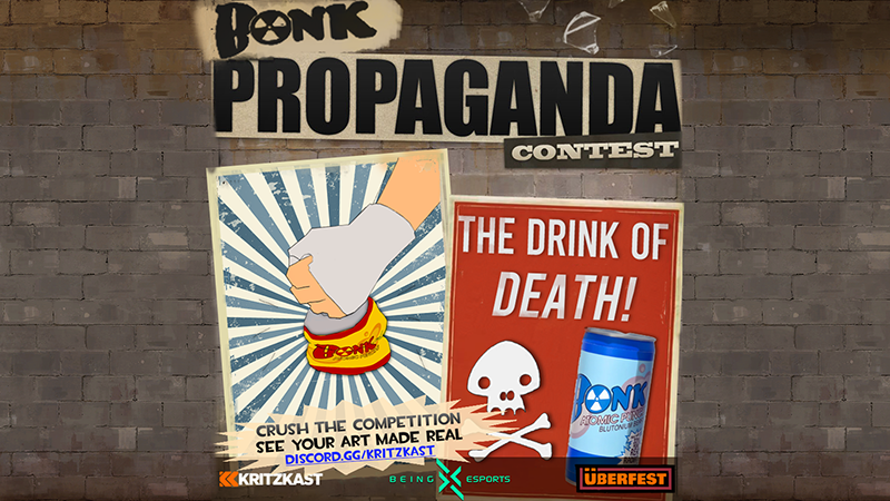Troops! Once again you find yourselves approaching the ultimate assault. Not of teams drawn from across the wide divides of Europe to see which group of 6 can hold aloft the ÜBERFEST trophy. But the true fight, the Epic battle of beverages named in honour of RED and BLU Bonk! In this great age, truth be damned, it's propaganda that sets the hearts of fighting drinking combatants ablaze.