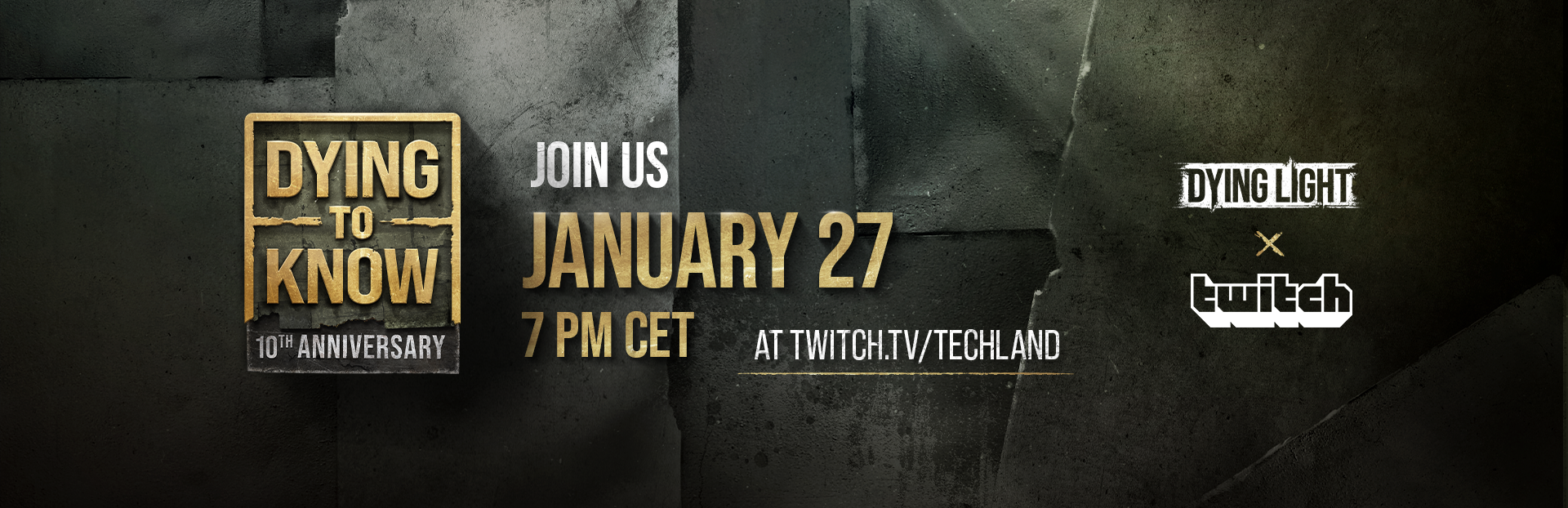 To celebrate Dying Light’s 10th Anniversary, we invite you to join our Twitch stream on January 27 at 7pm CET for a special episode of Dying to Know. You don’t want to miss it!