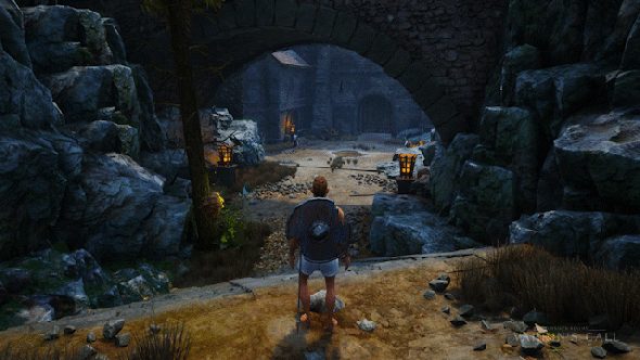 It's satisfying to see your mercenary holding a sword in this way, but it's even cooler for NPCs (in my opinion). They're no longer flailing their weapons around, and seeing them approach you while holding their blades upright has done a surprising amount for making combat encounters feel more engaging.
