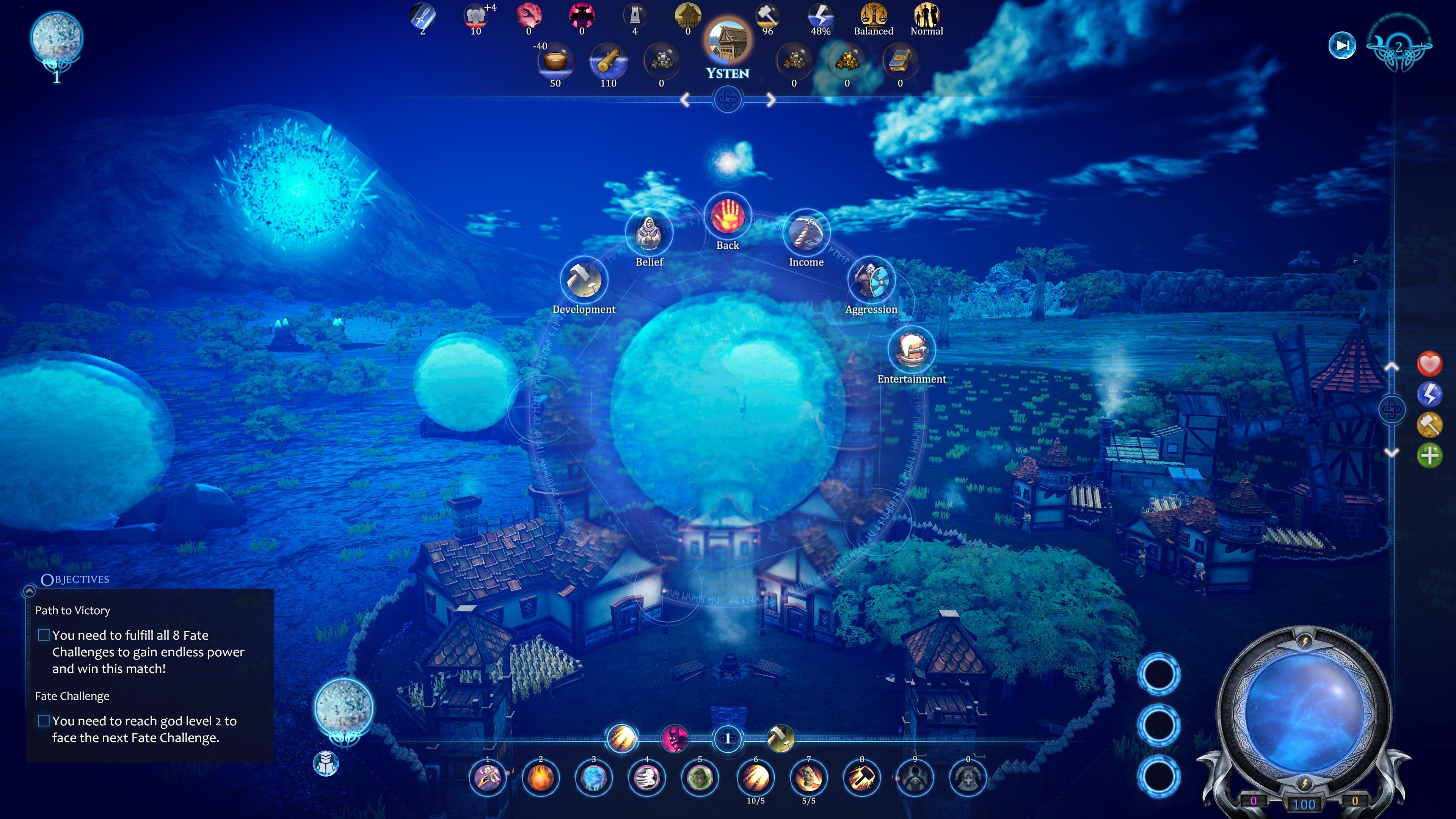 Furthermore, we have added different settlement profiles which are used to place different kind of start settlements with different mortals and buildings on startup, changing each match and providing more variety. These profiles are also used to let you as player get rid of the micromanagement and let the mortals do the job.