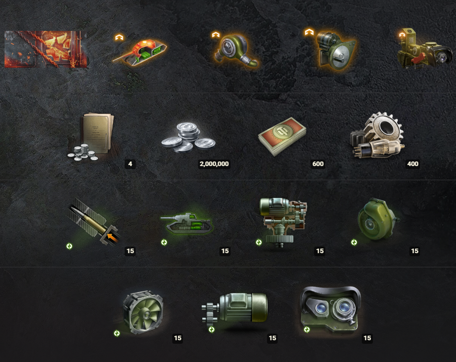 Collect special objects (loot) that randomly spawn on the map (Consumables and Supplies) but also remain after destroyed vehicles (Spoils of War). These objects contain resources, Combat XP, Combat Ability charges, shells, HP, and repairs for modules.