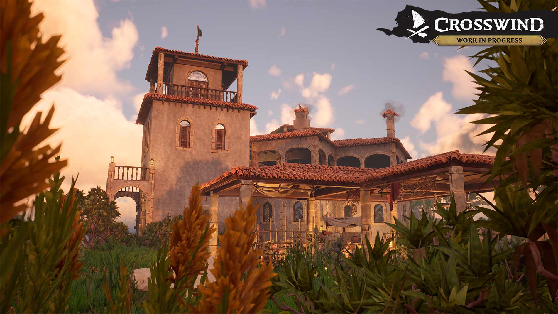 Old-World estate building set & interiors. Inspired by Spanish and British mansions of the era, it’s been reimagined to fit Crosswind’s tone. It’s not a strict reenactment, but it’s close in spirit. And yes, the mansion you see was built entirely with in-game systems and tools.