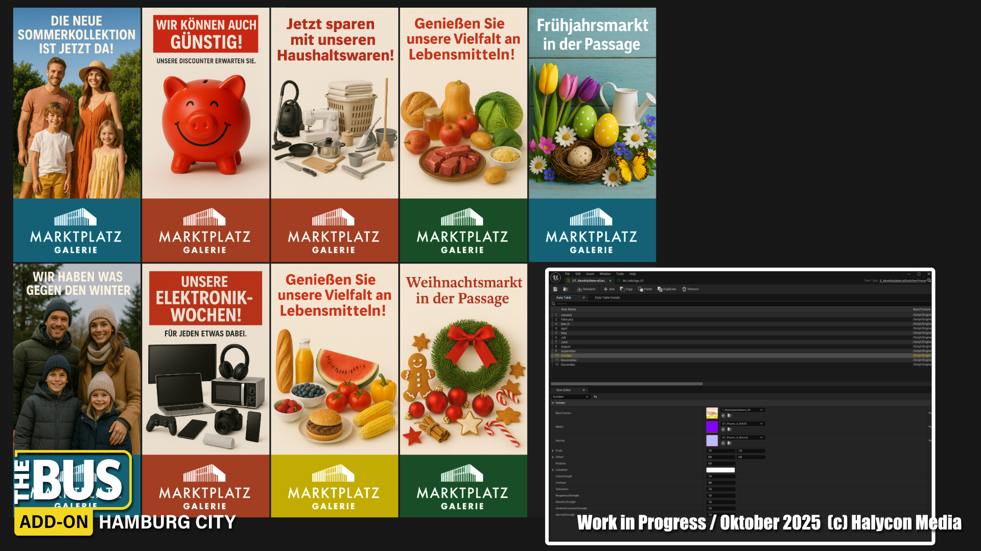 On the front of the Marktplatz Galerie, you’ll soon see large, changing ad banners that automatically adapt to the current month and season — showing ongoing promotions, local markets, or events at the mall.