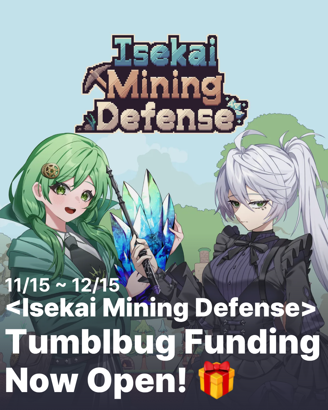 After much hard work, 'Isekai Mining Defense' has finally launched its crowdfunding campaign. We’ve prepared a variety of amazing merchandise featuring our characters. This funding is not the end for us, but the first step toward reaching all of you. We would be grateful for your support and for helping spread the word. And of course, we are truly thankful to everyone who decides to fund us!