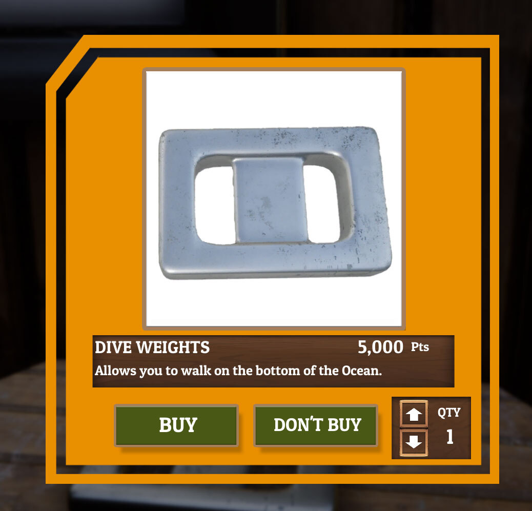 You will now be able to purchase dive weights and walk on the bottom of the ocean. This should make finding sea mushrooms much easier.