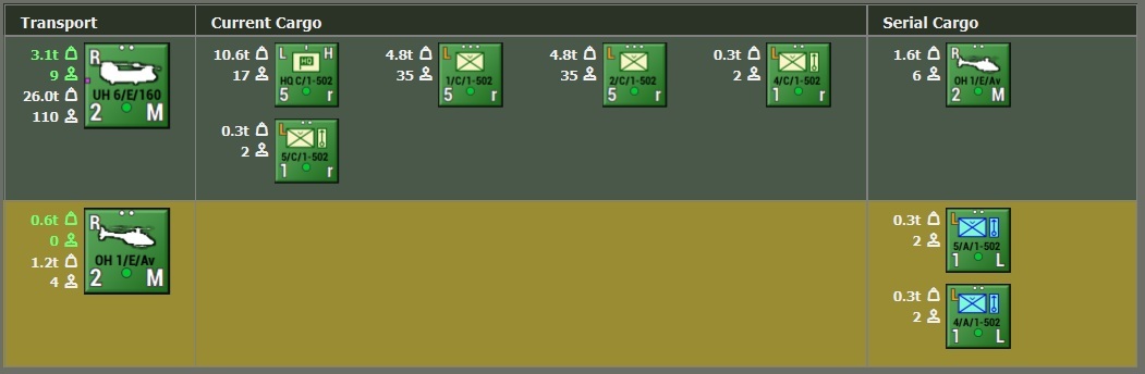 Another thing we can do is to break this up a bit. The table above is for what is called a Lift, which is the plan for all the units involved and will take the different units to multiple locations from multiple locations. We’ve broken this down into the players only needing to plan a single Serial at a time. A Serial has a single, specific pickup location and a single, specific drop-off location. With those changes in mind let us see what we have left.