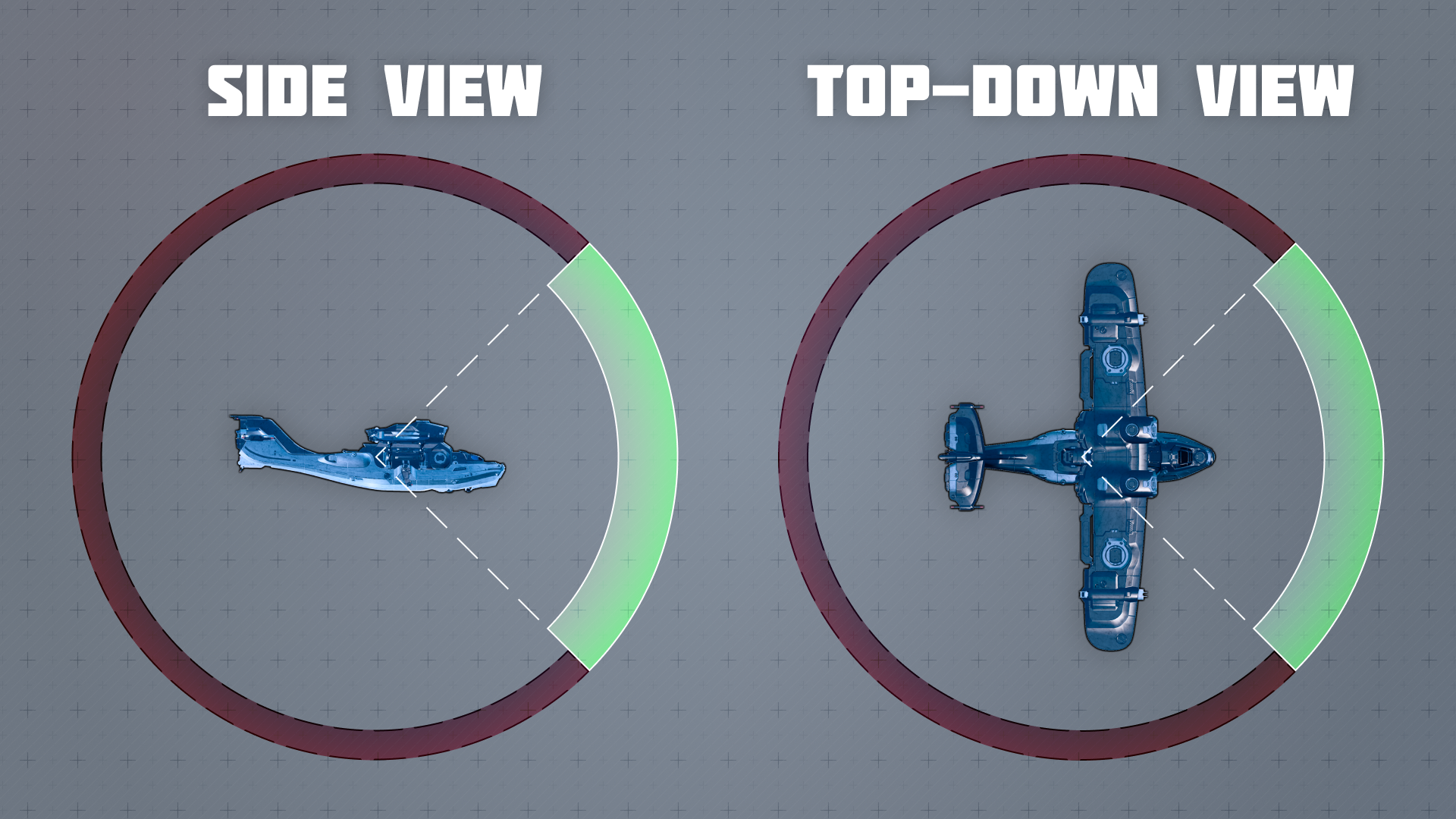 The core of the changes is that all weapons mounted on these ships can now fire at angles only within a specific zone in front of the ship. The size of this zone is 90 degrees along the vertical and horizontal axes in relation to the shipโs center. The image below shows the zone within which the weapons are able to aim.