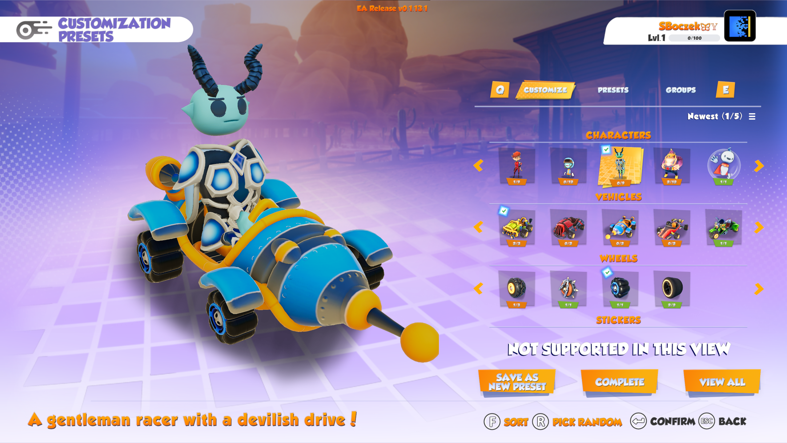 Quickly choose your character, vehicle, and wheels with ease.