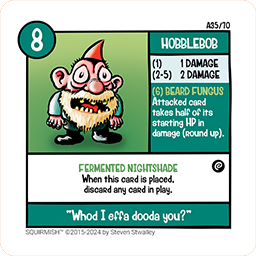 Sometime over the last year, we changed the interpretation of Fermented Nightshade to include Hobblebob as a target for removal. This makes placing Hobblebob as a starter a bit more risky, since if it becomes the first card placed, it will be the only valid target for Fermented Nightshade and must remove itself.