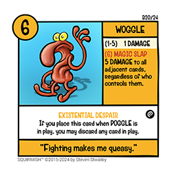 However, the new Biscuits vs. Gravy DLC introduces three more cards with placement-triggered abilities: Giggler, Woggle, and Poggle.