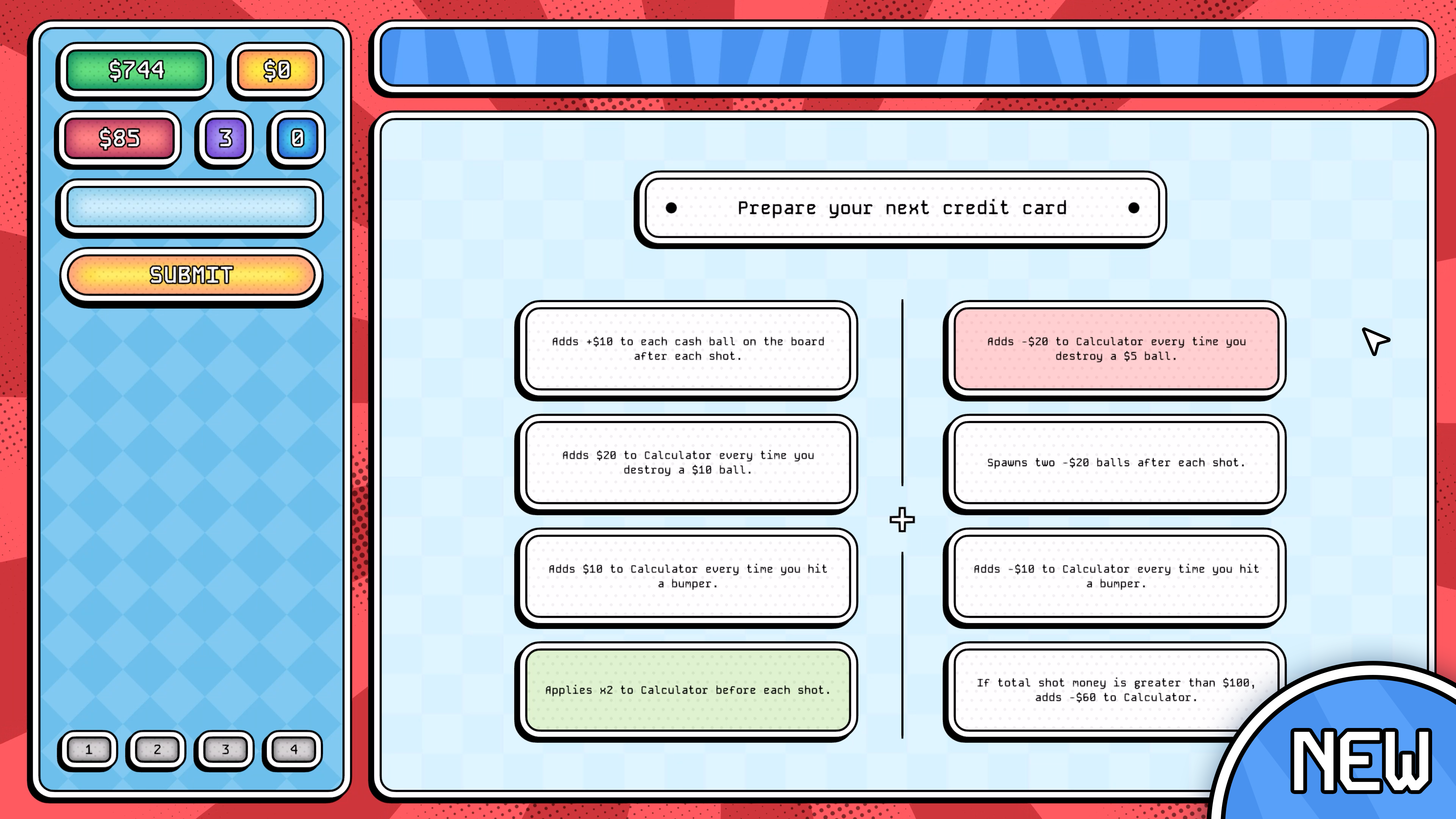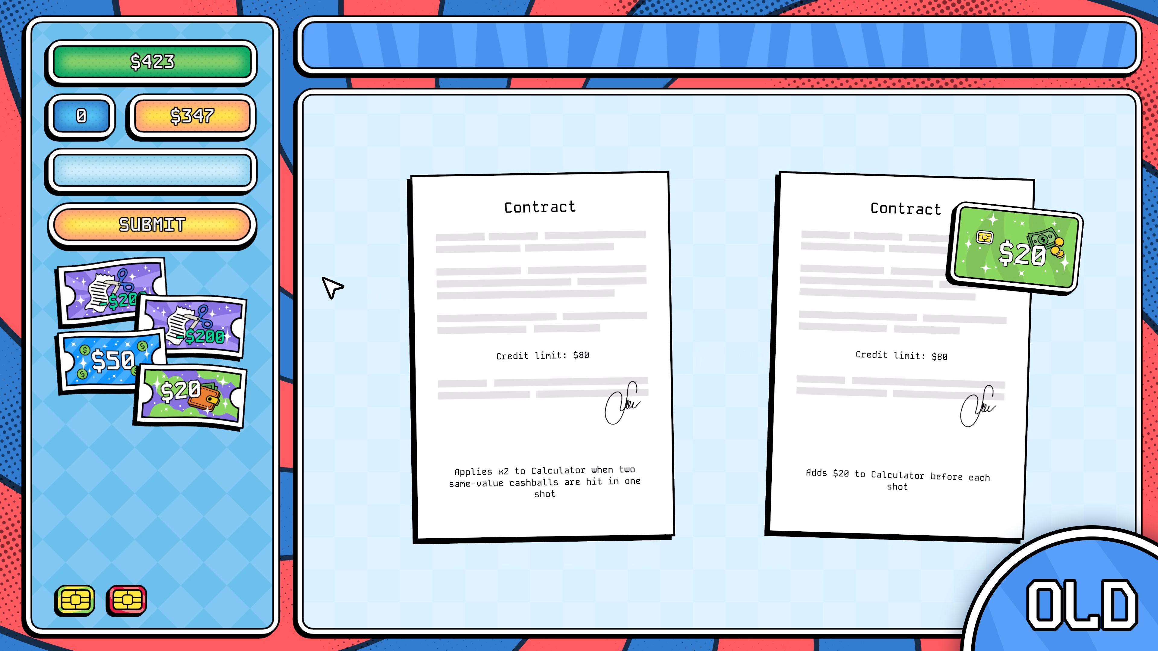 As you can see in the screenshot, the old version required you to pick one of two randomly chosen cards. Previously, all of these cards were designed to help players earn more money. Similar to jokers in Balatro, you could hold up to five credit cards at once.