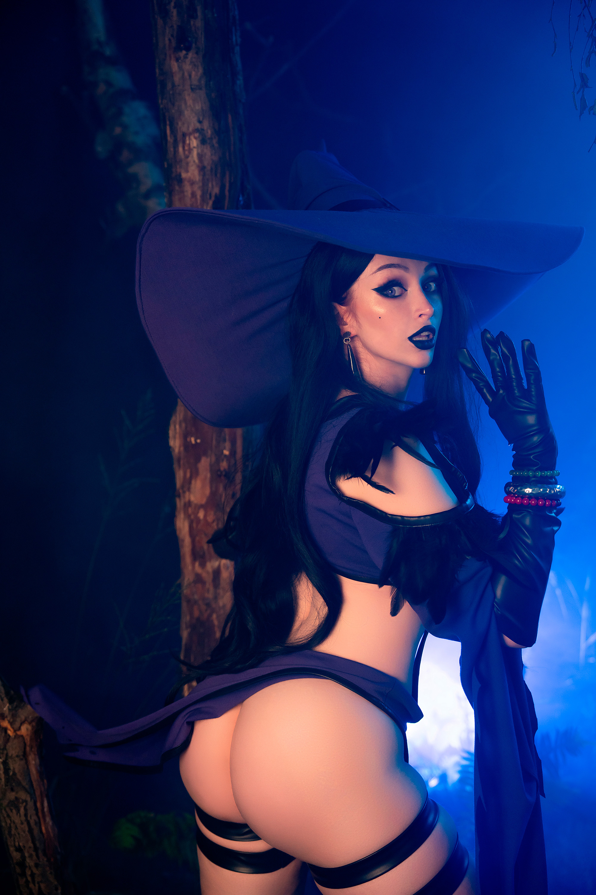 The beautiful Lady Melamori brings the witch character to life in a series of elegant and sensual shots.