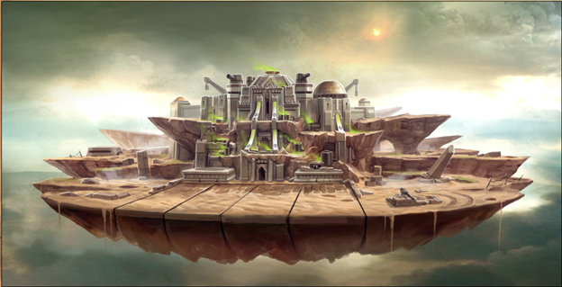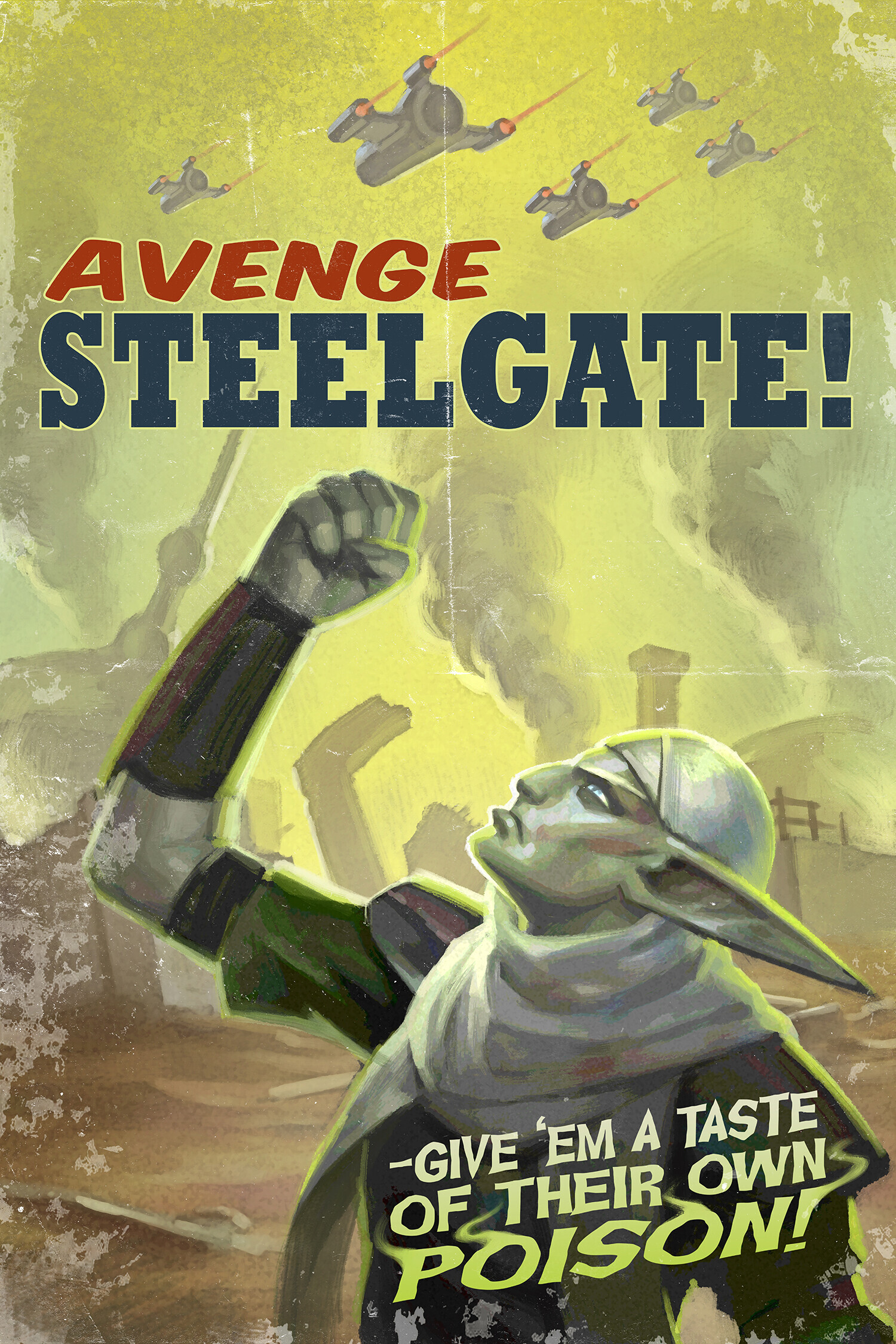 Within the scorched deserts of Terrene Gall stands the ruins of Steelgate. Once a magnificent, shimmering metropolis, it was long revered as a neutral oasis – a city of Elven mystics, monks, and scribes whose serene existence was untouched by the campaigns of the Second Great War. The August Kin, its diligent laborers, kept the libraries and archives flourishing.