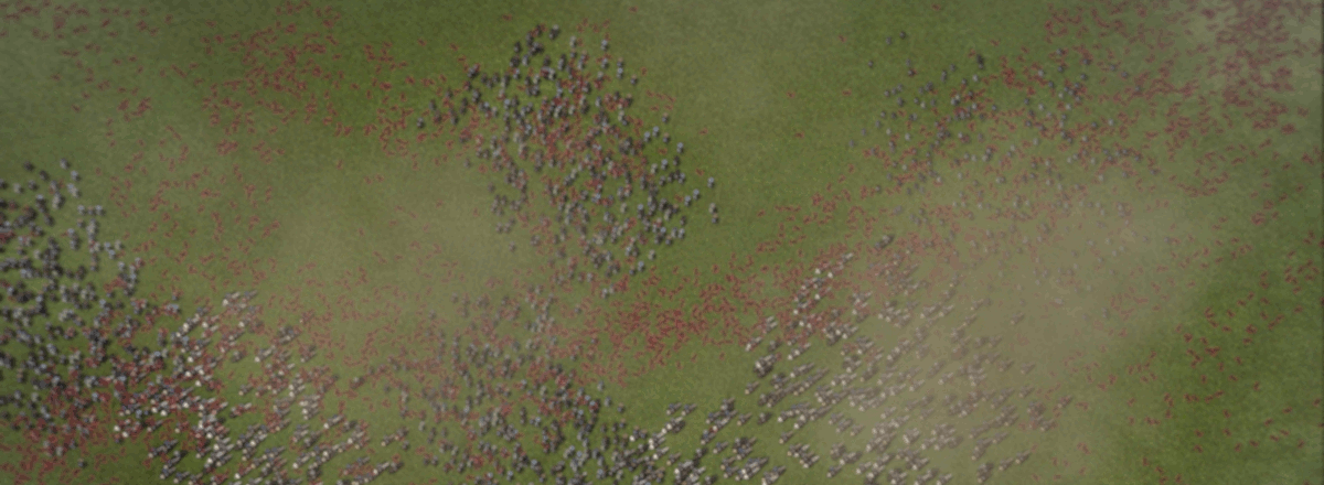 That said, I thought it could be interesting to also let you see the battles in another way: with all the individual soldiers on the field. This gives a much clearer sense of the scale of the conflict. The largest battles can reach up to 300,000 soldiers on screen, and the engine is capable of supporting up to one million if needed.