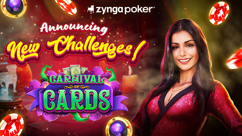 A brand-new limited-time event has arrived in Zynga Poker: the Carnival of Cards! The tents are up, the lights are glowing, and the rewards are waiting! It's time to take your seat at the tables and play for exclusive prizes during one of our most festive seasonal events.