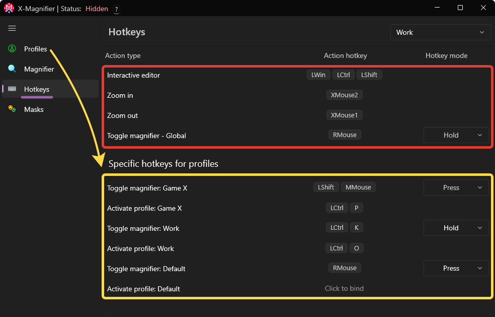 Hotkeys for "Magnification Hotkey" and "Activation Hotkey" (which can be set to the same or different)