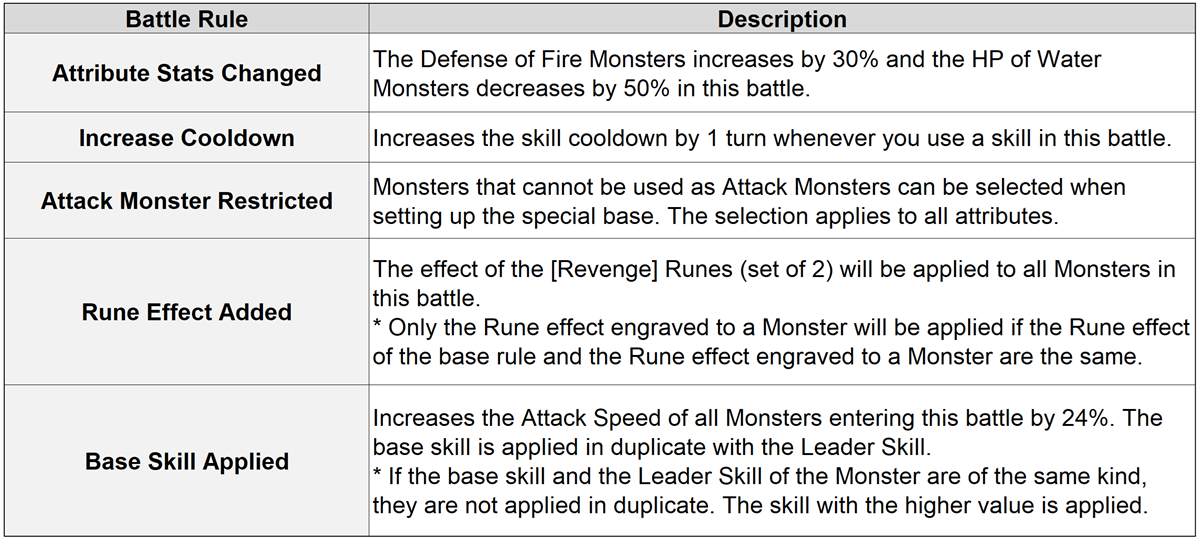 - Fixed an issue where certain special rules of Siege Battle Tournament Season 19 were applied incorrectly in the test battle feature. Please refer below for the correct special rules for this season’s Siege Battle Tournament.