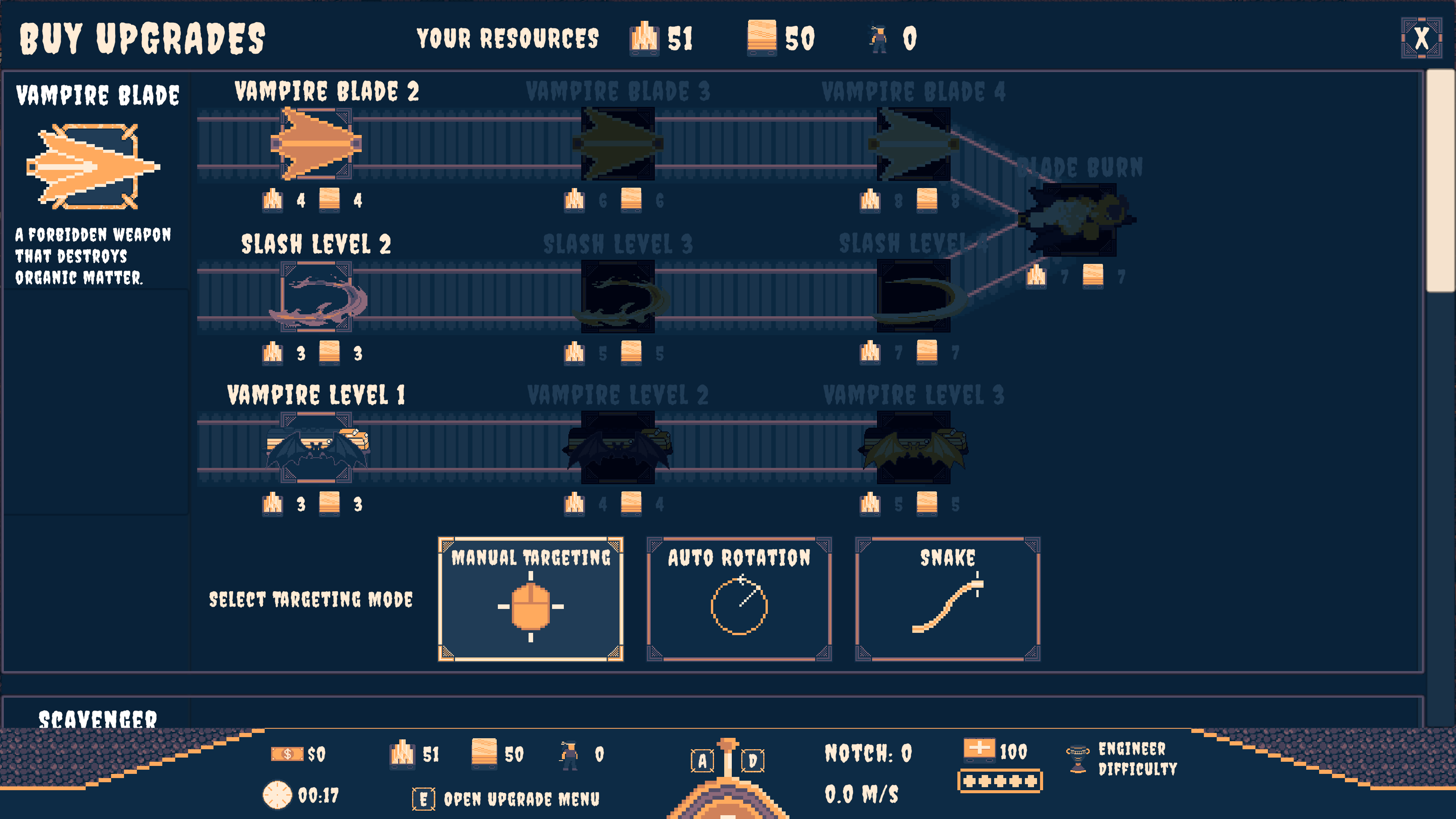Good news, our weapon technicians have been able to upgrade the Wrecking Ball and Vampire blade with auto targeting/swing options. You can now set them to auto rotate or auto snake.