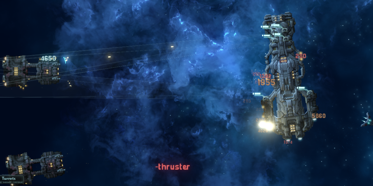 Because armor, shields, and hull can take such different amounts of damage, and because increased bullet damage is a stat that you can collect, I wanted to be able to see how effective my shots were during combat, so I made a proper system for floating combat text. It adds up all the changes to pixel values from a bullet instance, color codes the number based on what you hit so there are different color numbers for hull, armor, shield, and critical hits, it also tells you when a dodge occurs. The numbers are even sticky and animated to look nice.