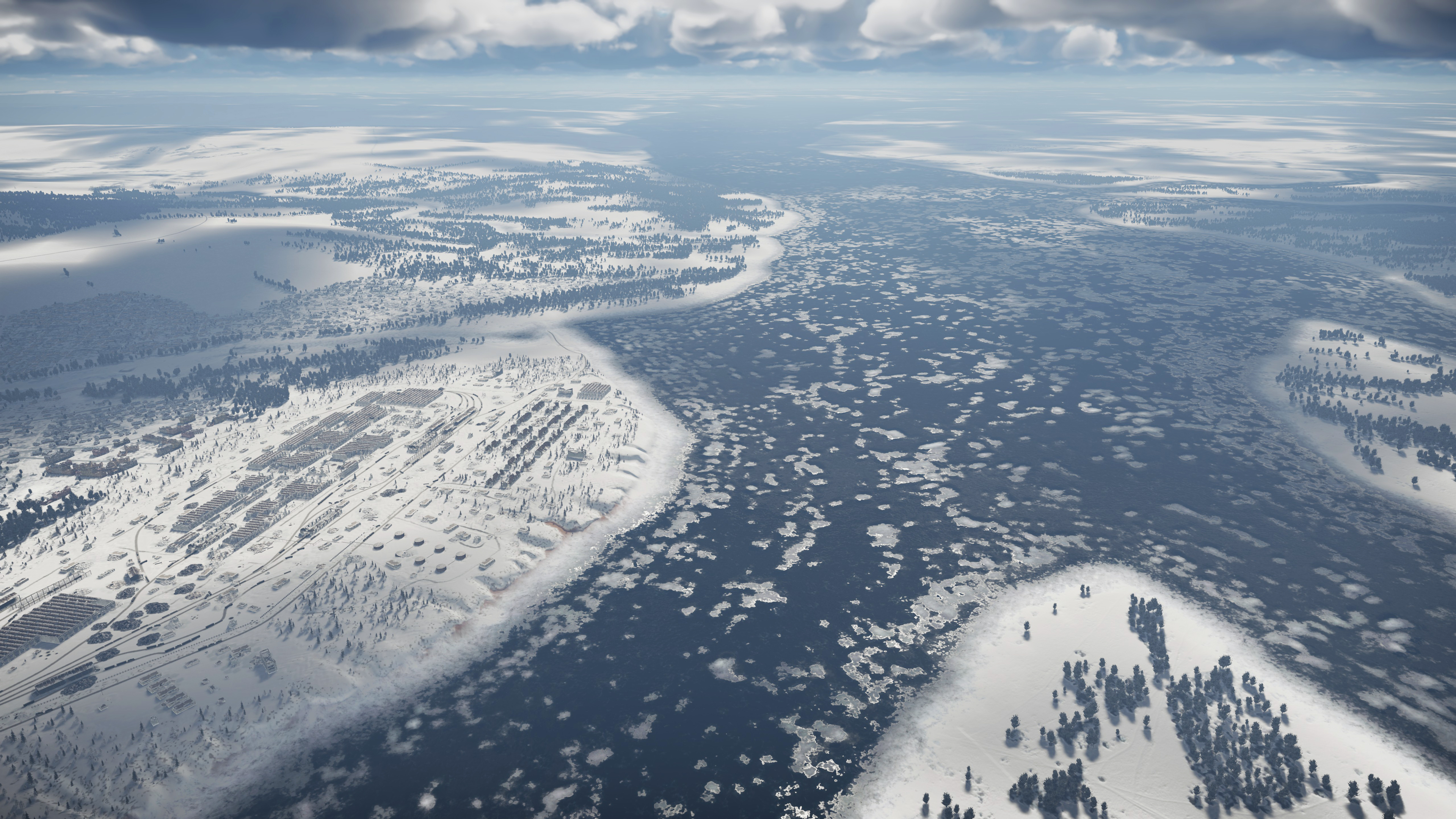 [carousel]Weâve also updated the aircraft areas of this location! The winter forest now looks more authentic, the frozen river has a realistic ice crust with different ice colors for different depths, and snowdrifts have been added too.
