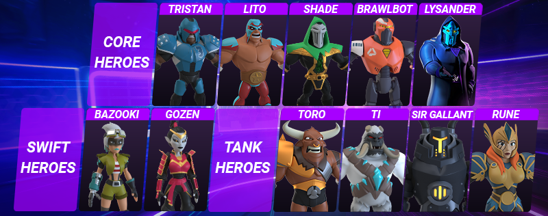 The heroes of HyperBrawl come in three different types; Swift, Tank and Core. These classes offer slightly different play styles and benefits, giving players more strategy and diversity in their gameplay. Here's the quick rundown: