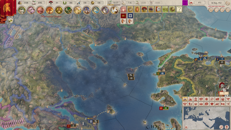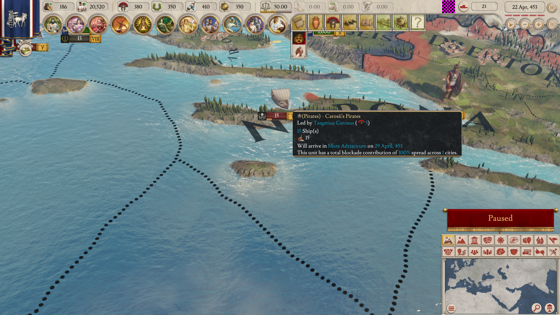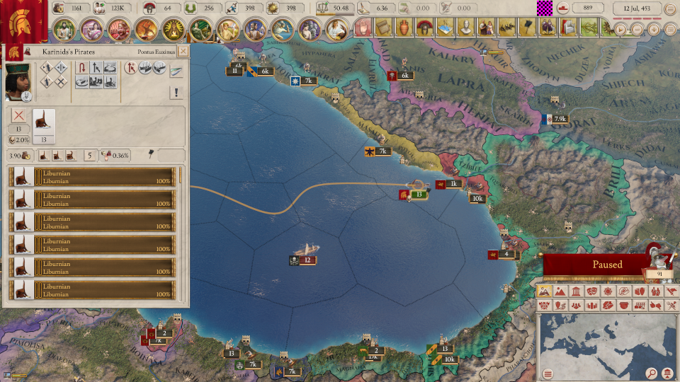 In times of peace Pirates were generally not hired as the interest countries had in them was as part of their navies. Their raids during such times would often be seen as quite bothersome by local states who would sometimes embark on entire campaigns with troops as well as ships to pacify them. This was famously the case for Pompey the Great, the namesake of this patch, but there are many other examples such as the recently deceased Eumelos, king of the Bosporan kingdom.