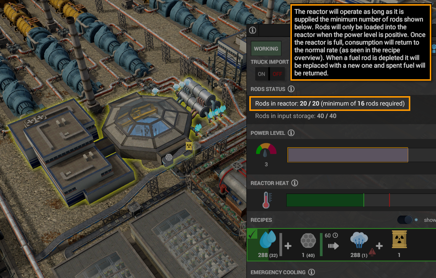* Added UI showing the state of supply of fuel rods in the nuclear reactor.