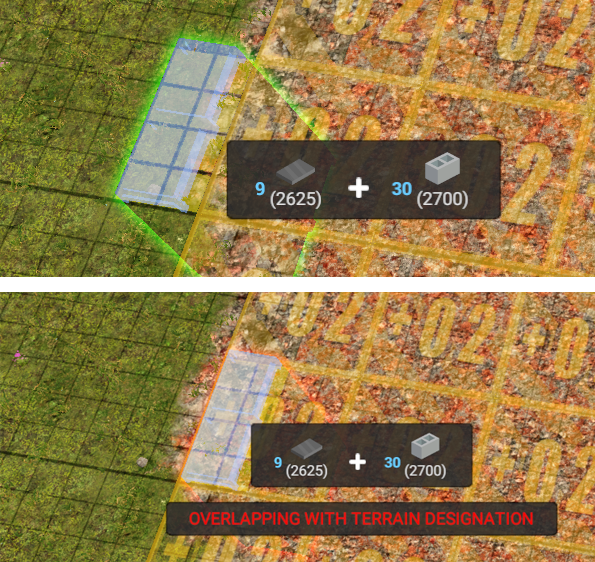 An alert message will appear if trying to place a wall over a previously designated zone and you will not be able to place the wall there