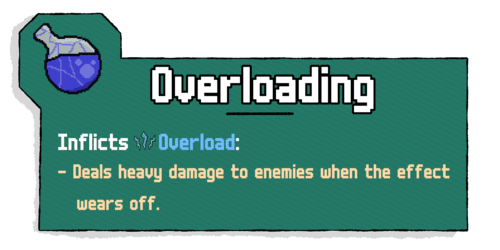 Overloading Potion gives a delayed hit that will deal massive damage. This delay can help you stack up a ton of damage at once or perhaps you want the initial weaker hit to take out a shield for you.