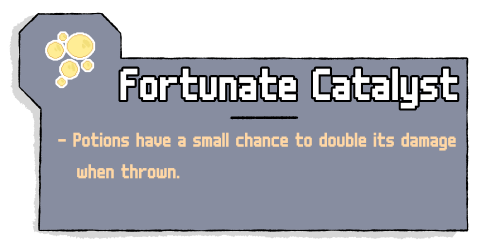 Fortunate Catalyst gives you a chance to double the damage of your potion. Pretty simple, but extremely powerful when used on the heavy hitter.