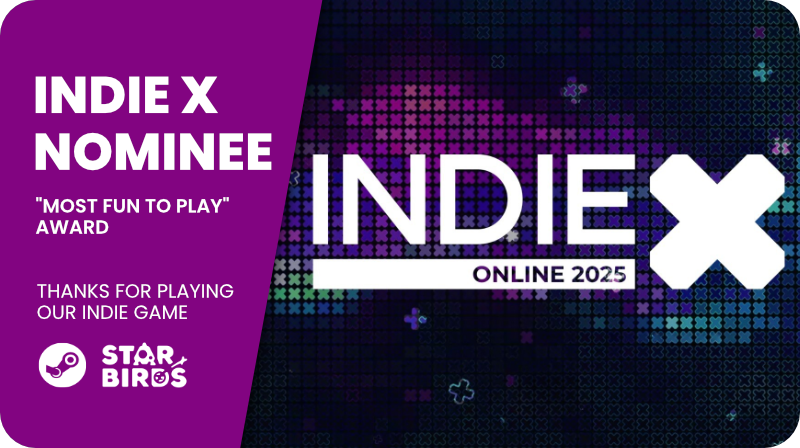 The indie game showcase Indie X is back for another edition — and Star Birds has been nominated for the “Most Fun to Play” Award!