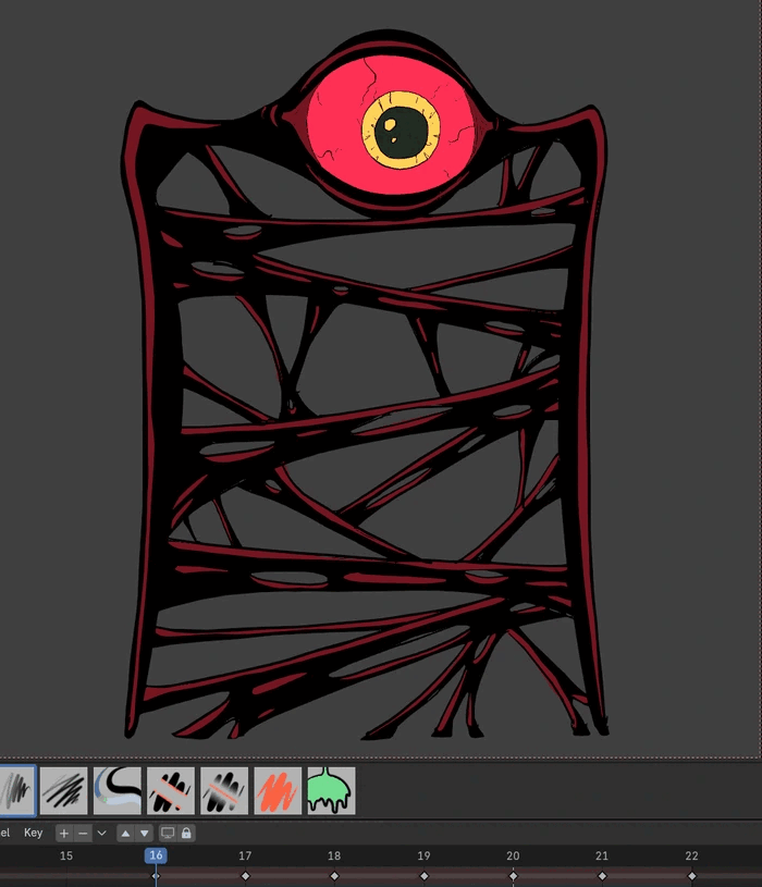 This one is a little different: it's a "skill gate" (i.e. a doorway that players have to use a particular skill or move to pass) that requires players to use Nemo's new Reflect ability to pass. Reflect is a power that lets Nemo (specifically Nemo) deflect enemy projectiles back at them if he can hit them with his sword. It is going to be the basis of a few enemy encounters in the game, so we wanted to make a doorway that trains players to use it. The door's eye fires shots slowly at the player, which they can reflect back to the eyeball.