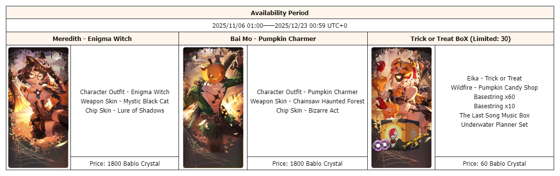 Event Period: After the October 29 update – November 5, 02:00 (UTC)