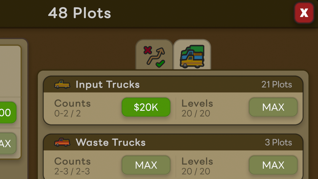 The Trucks tab has also had a similar improvement, so you can now buy Trucks in batches across a bunch of selected Plots all at once!