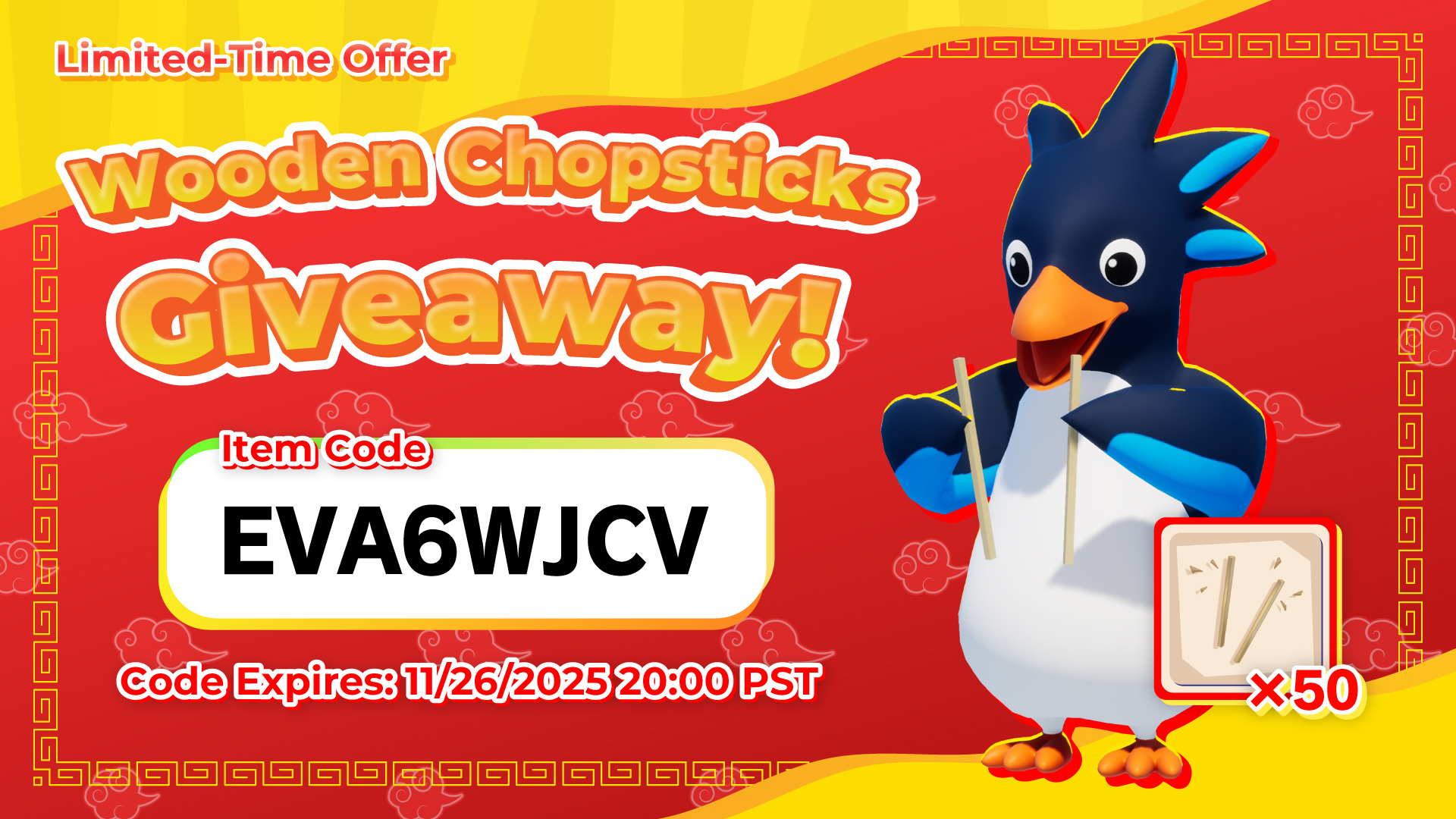 We’re giving away 50 \[Wooden Chopsticks] consumables you can use in the game!