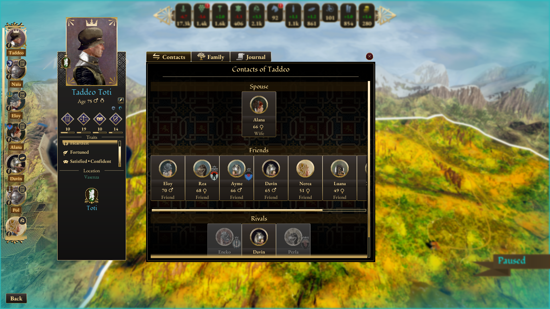 In Calderia, you aren't just a ruler; you're a leader managing an entire family. Each family member has a unique personality, traits, and desires. Take the time to understand their strengths and weaknesses, and assign them to roles that best suit their abilities. Keep in mind that characters' personalities can evolve, shaped by the events they experience. Lastly, pick the right family member to manage your fiefdom's key operations to bolster your production and maintain the people´s happiness high! Effective management of your family members is key to your success.