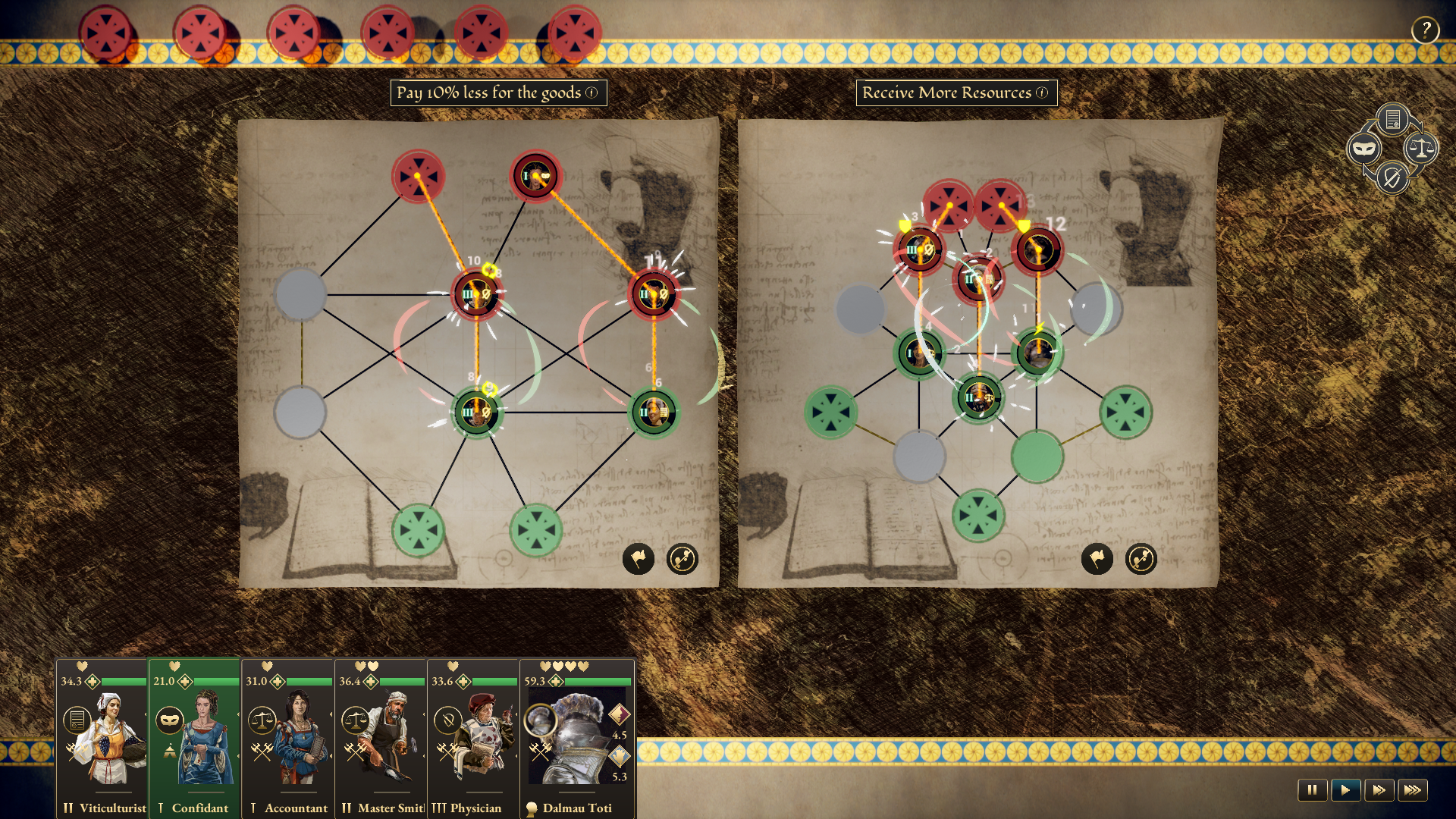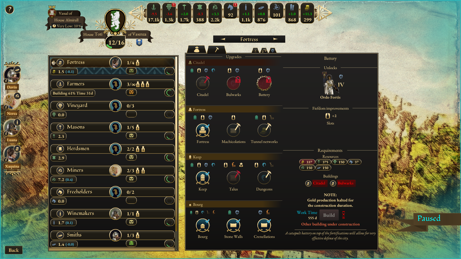 The pool of Agents & Units is linked to the infrastructure. Upgrading your region will not only increase your maximum Population and boost your production but also give you access to unique Agents that can help you in social conflicts or new Unit Types that can be recruited during wartime.