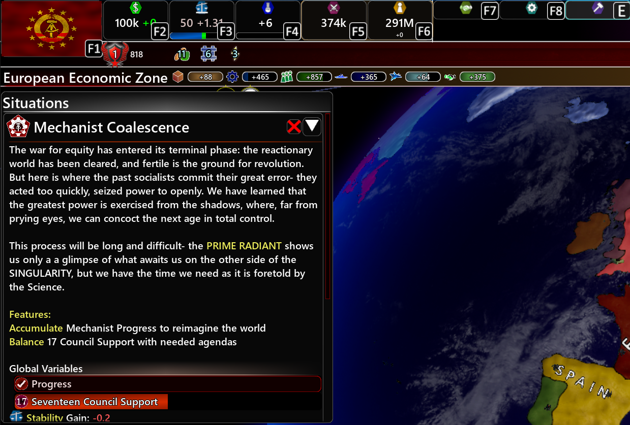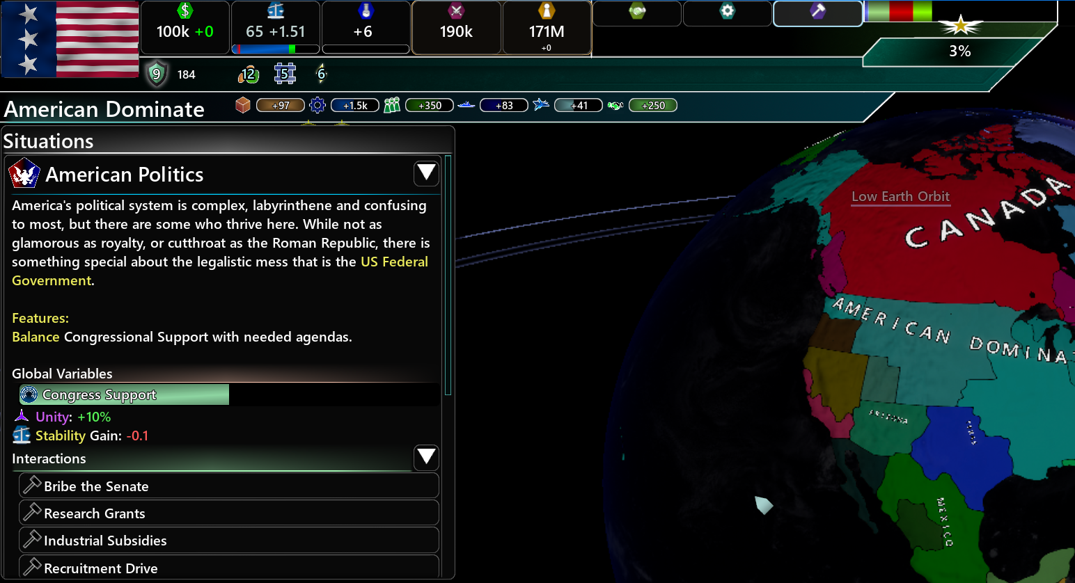 Hello everyone, for the past few weeks I have been working on new politics related content for Solar Nations 2 and am now ready for those changes to move onto the experimental branch. This announcement will go over what the changes are as well as the logic behind them.