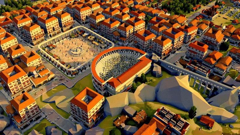 The day night cycle is also a fun way to simulate patterns of daily life and add more liveliness to your city. When folks are done with work they’ll visit a theater or shop in their idle time, before going to bed.