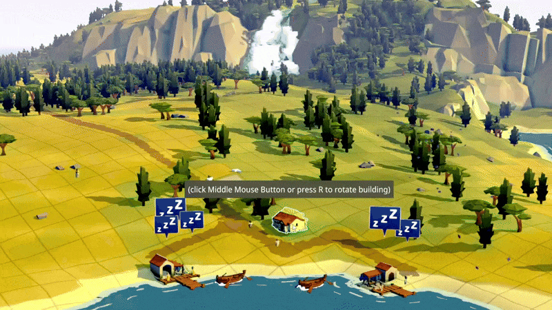 When work ends, citizens need to walk home each night and get some sleep. Your city's design affects the length of their trip to and from work. If they can’t make it home in time they’ll get tired. Below, these workers have a job at a fishing hut very far from their home so they're not able to get enough rest: