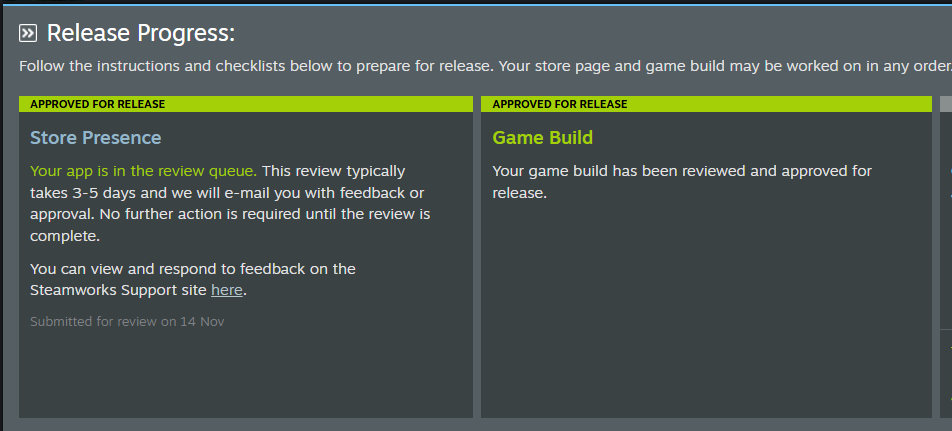 Once this check is complete, the Release button will unlock and I will publish the game immediately.