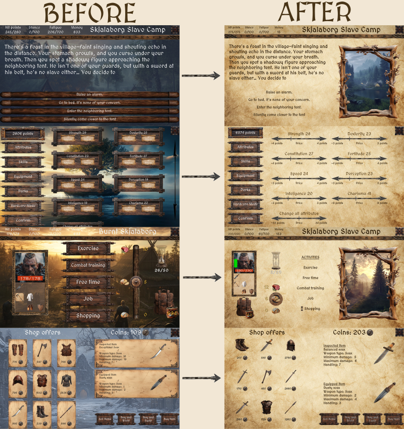 Beyond the visual update, I've also implemented a long list of bug fixes, text polish, and general quality-of-life improvements based on player feedback. Together, these changes make for a smoother and more cohesive experience on your journey from thrall to legend.