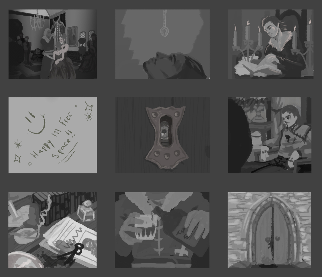 Hi everyone! Today we want to talk about the character creation process. In the beginning, creating the mechanics and ensuring the fun was our main focus. Things such as narrative, characters, or historical setting were put on hold. In fact, it's mainly the Art department that took care of these topics. The first decision made was about the general artistic direction of the game. We kind of decided it together, but the Art department had more influence on the topic. After, we started creating the main chatacter. There were some fixed concepts that Design needed to have, such as the use of occultist powers, the name of the main character, and his clothing style - influenced by the artistic direction of the game itself - but the rest came from our favourite doodling Concept Art team.