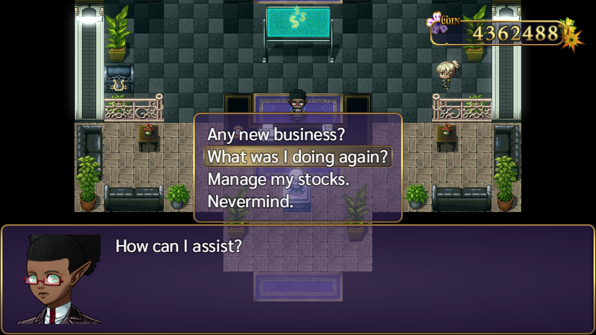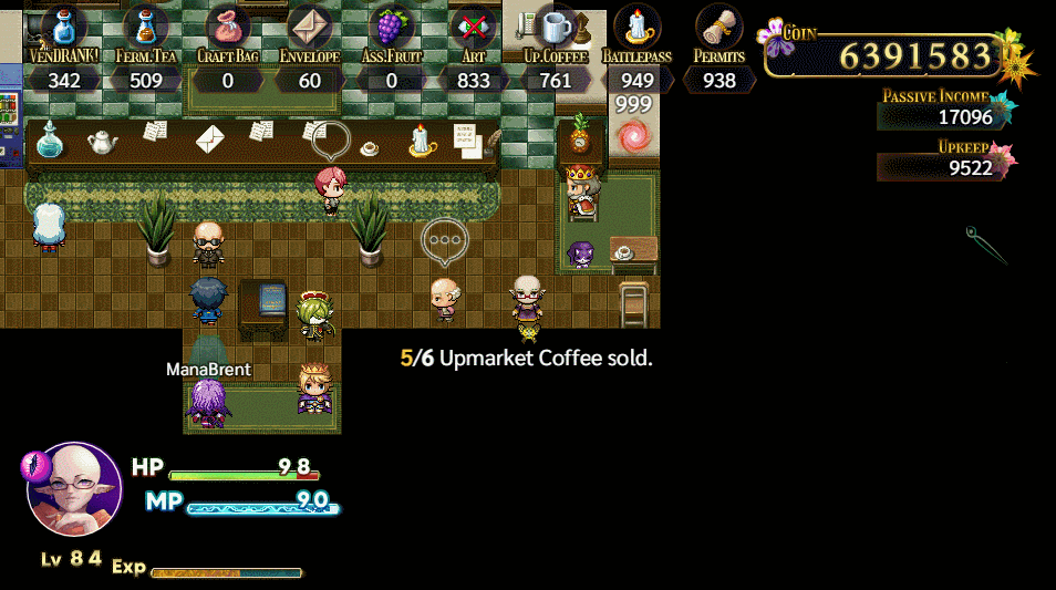When this customer enters the store a name is displayed above their head. The name changes to the next one in a list each time they enter. Supporters on Patreon can opt to have a name of their choice added to this list, the game will even recognise if it matches your Steam name. (This will not offer any gameplay benefits, it is simply a thank you from me to the supporters).