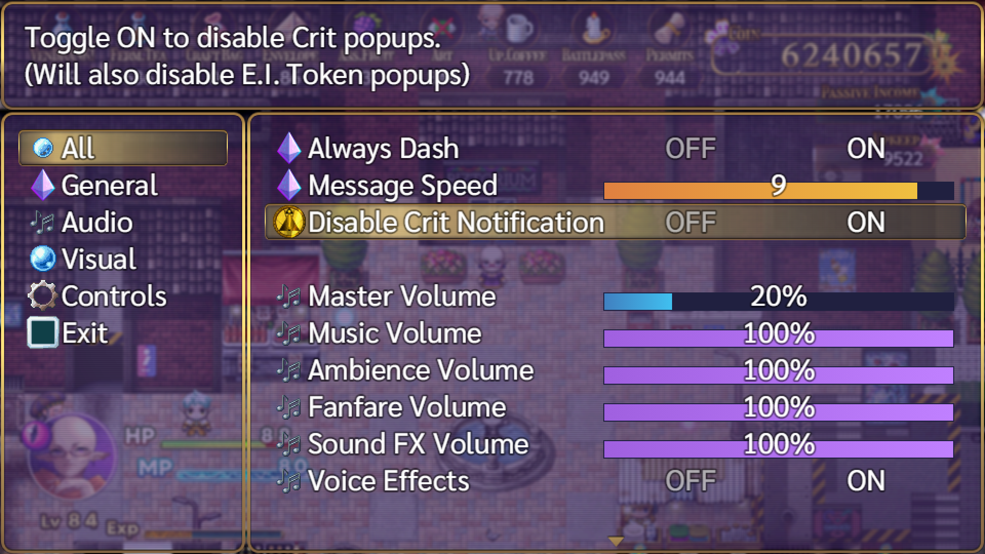 Added an option to disable crit and token notifications.