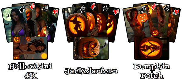 AI Solitaire - Halloween provides 3 new decks to use with AI Solitaire! This DLC is themed around beautiful girls in a halloween style with a jackolantern deck thrown in for fun!