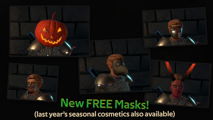 The Merchant also sells new Masks for your avatar. These are purchased with in-game gold - no new DLC this update. We have also brought back last year's themed cosmetics in case you missed them or are new to the game.